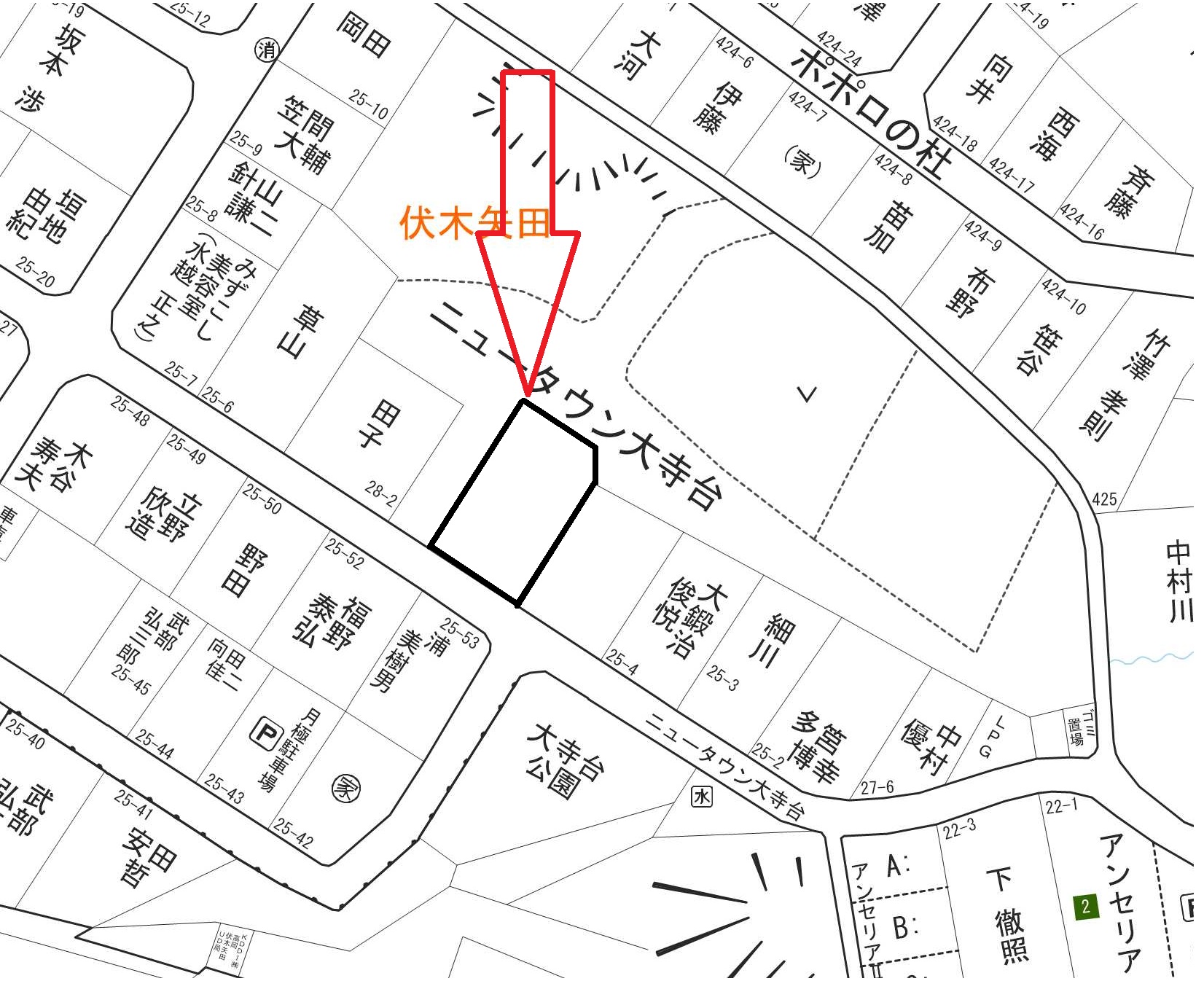 | 分割応談 | 約100坪を実測分割し引渡し(面積の増減相談可) |